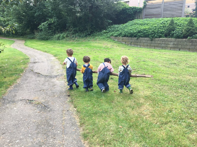 De tuin is ingericht als atelier, een rijke speel-leeromgeving waar de creativiteit opbloeit. De buurt is een prachtig park waarin we het gebaande pad verlaten en het avontuur tegemoet gaan!